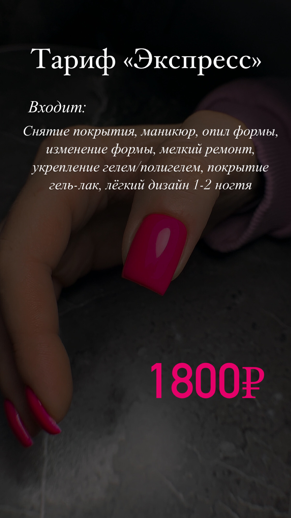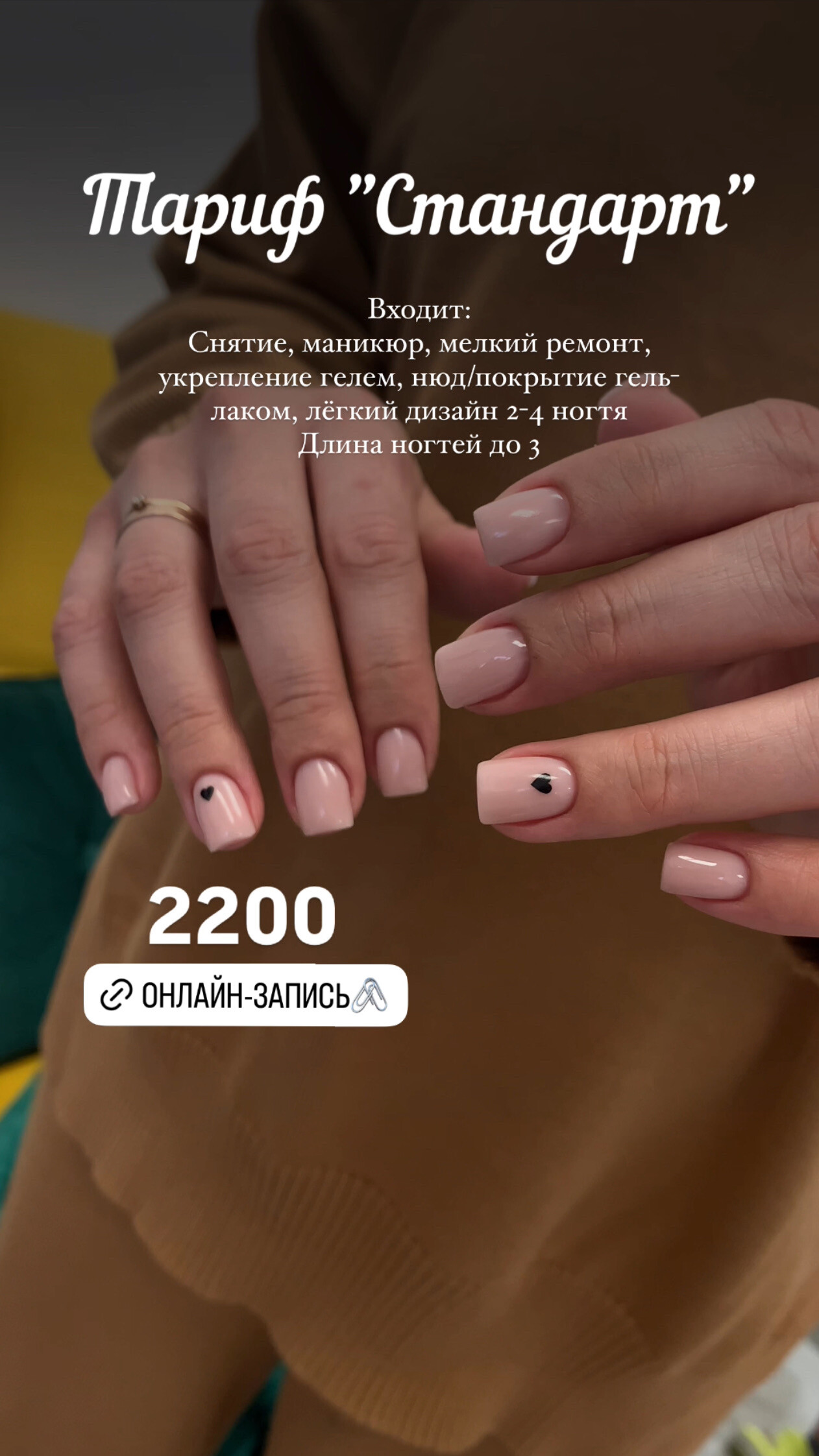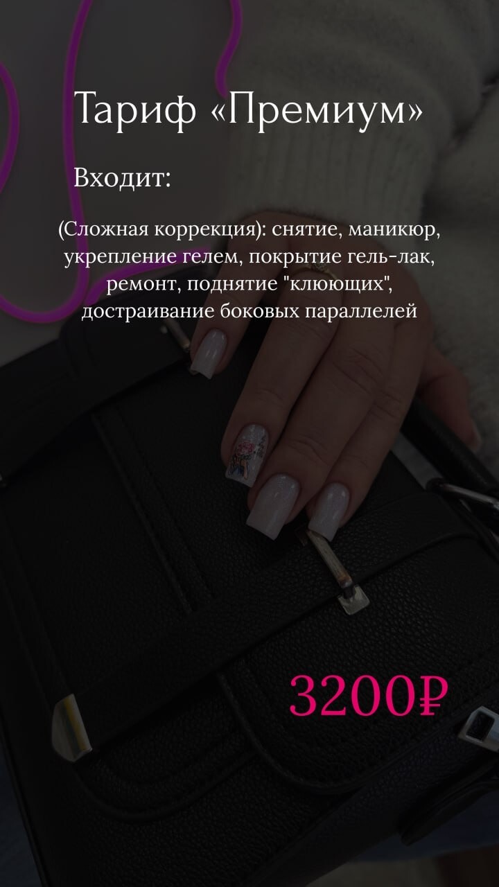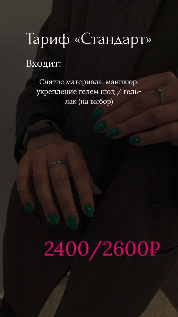 Потратив от 60 до 120 минут, Вы получите идеальное покрытие, дизайн, СПА-массаж и приятное препровождение в моём кабинете за чашечкой вкусного чая/кофе🥰