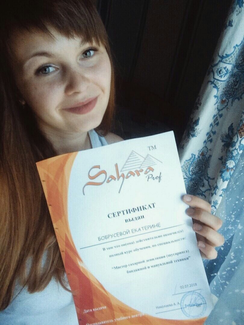 По образованию я медицинская сестра,находясь в декрете я решила получить новую профессию и вот уже как 2 года являюсь мастером сахарной депиляции,а с недавних пор еще и восковой.