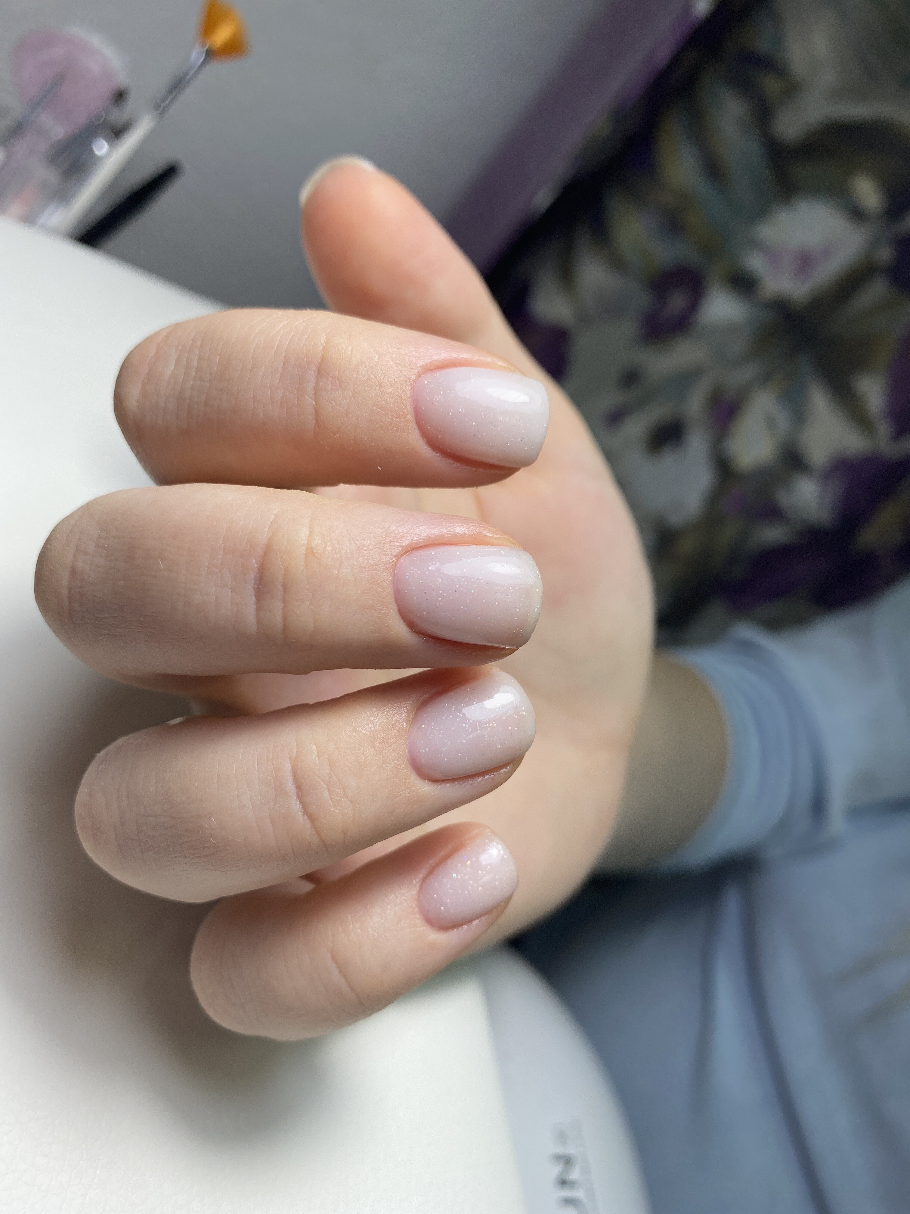 Выполняю маникюр в комбинированной технике, покрываю гель-лаком под кутикулу, выравниваю, укрепляю (по желанию).